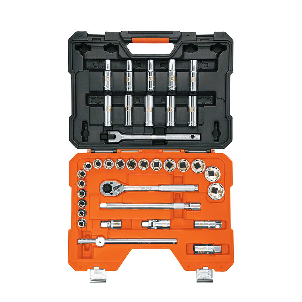 - כולל ידית רצ'ט, 2 מאריכים, מתאם, מפרק וידית בוקסה